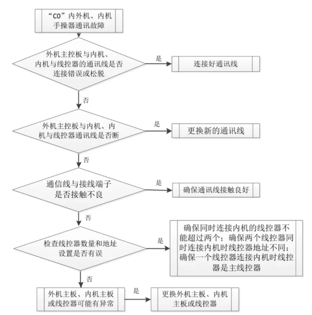 3、檢查通訊板:通訊板是室內(nèi)外機(jī)通訊的關(guān)鍵部件,如果通訊板損壞或故障,也會(huì)導(dǎo)致C0通訊故障,可以嘗試更換通訊板來(lái)解決問(wèn)題。