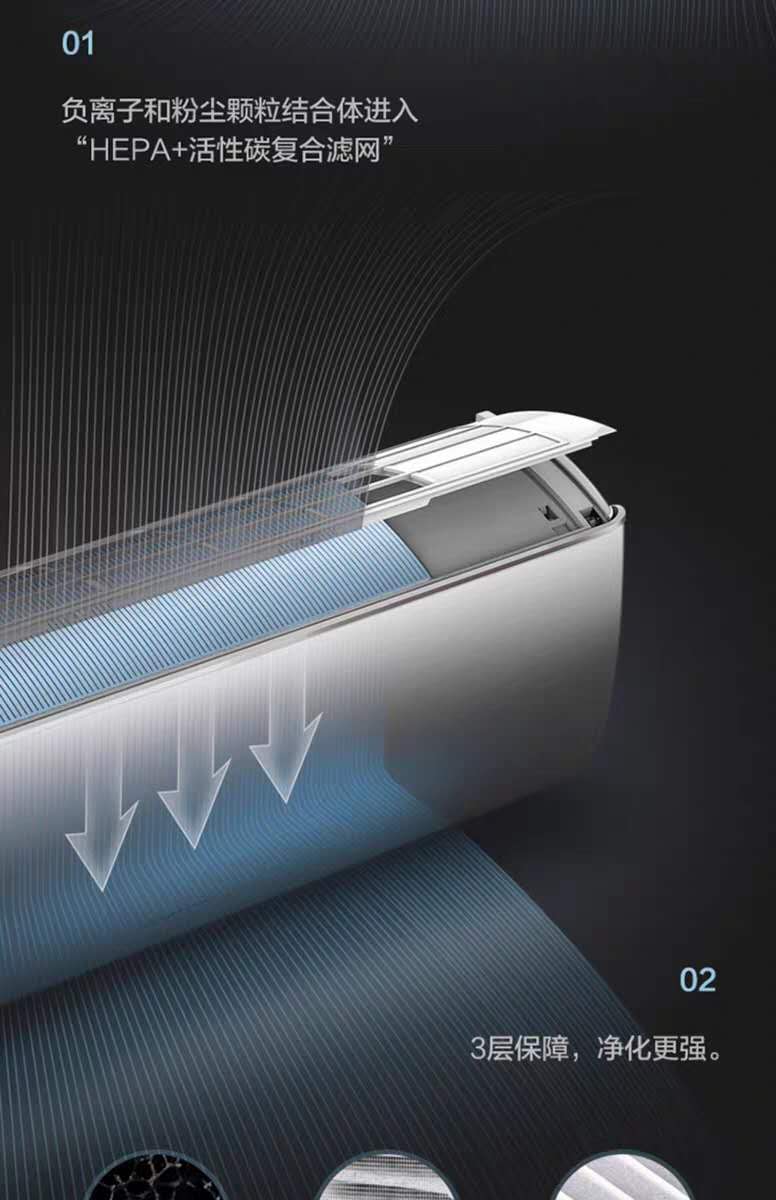 健康:講風,口全覆蓋HEPA+活性碳復(fù)合濾網(wǎng),高效去除PM2.5,蒸發(fā)器自清潔技術(shù),干燥除塵二合一。